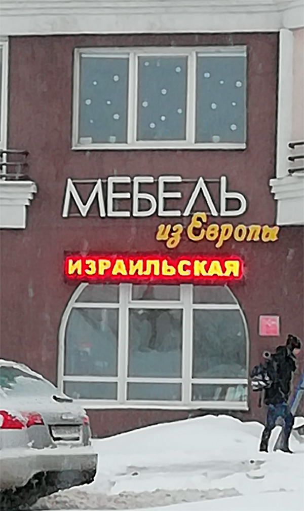 Объясняем. Израиль свою мебель отправил в Европу. Какая из этого мебель в Европе не понадобилась - ее отправили сюда, в Могилев, где сделана данная фотка.