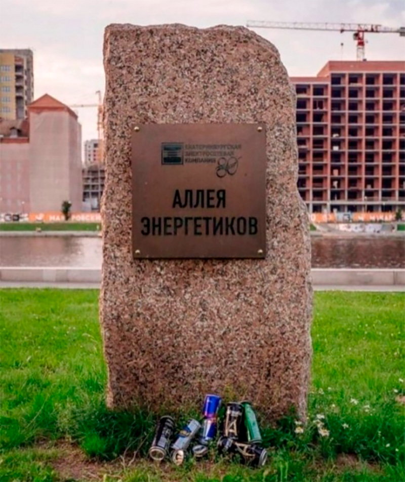 Ну, в общем, логично: что еще приносить к памятному камню Аллеи энергетиков?