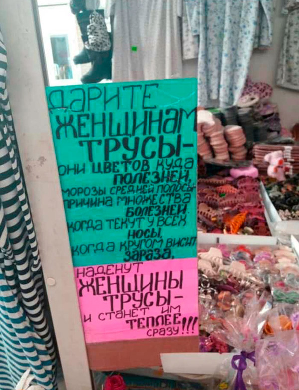 Гена Крокодил прислал чудесный восьмимартовский креатив, который настолько хорош, что тут даже мужчины могут не устоять перед соблазном купить и себе трусы.