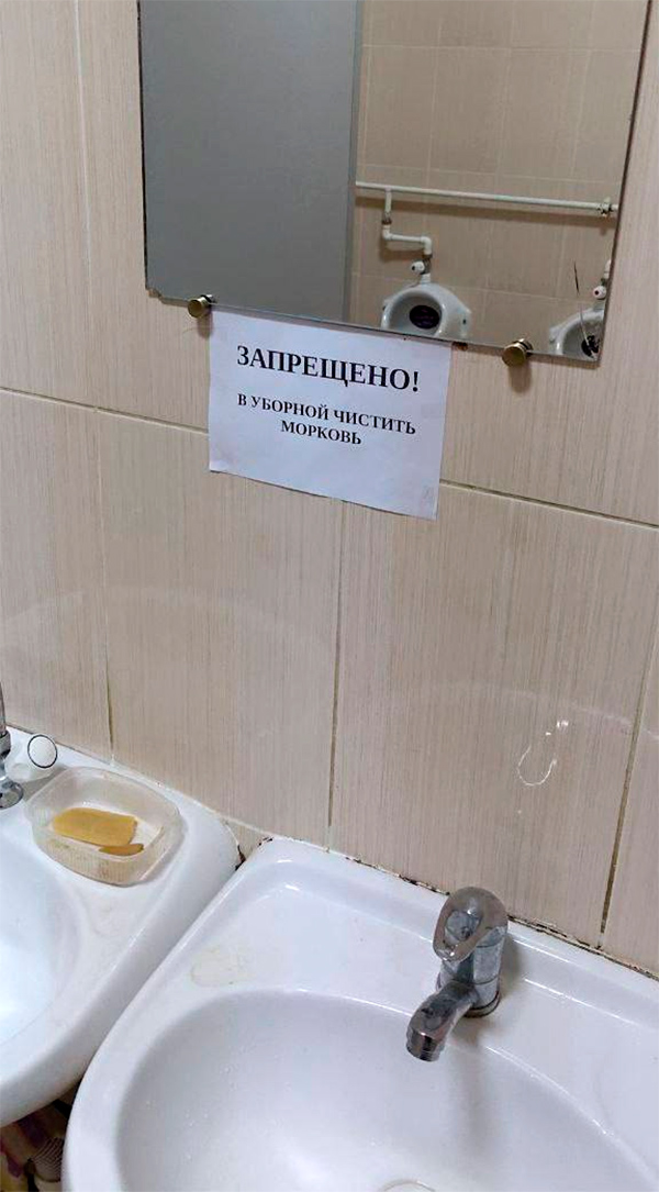 Видимо, предполагает Дуристка Кэт, в этот сортир тайком пробирается чистильщик моркови и начинает чистить морковь.