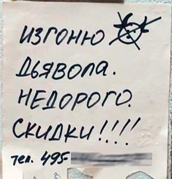 Объявление про дьявола, кажется, из сериала, который крутят сейчас по первому.
