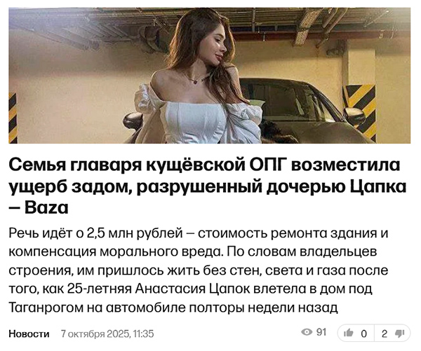 На Echofm, рассказал Innocentius Bystander, считают, что дочь Цапка что-то там разрушила задом.