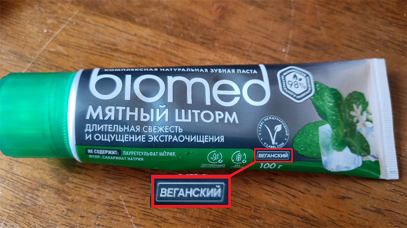 Monteckel пытается понять, что означает надпись "веганский" на мятной зубной пасте.