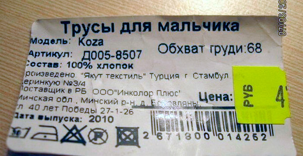 "Кошки в квартире с курицей" уже были, а вот трусы для мальчиков марки "Коза", сделанные фирмой "Якут-текстиль", но не в Якутии, а в Турции, "доставили". Да, и зачем оскорбили хорошего артиста - он не "Хрен Боярский", а Михаил...