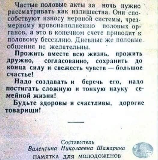 Валентина Николаевна Шамарина советует молодоженам! И помните, что дневные половые общения нежелательны Валентине Николаевне Шамариной!