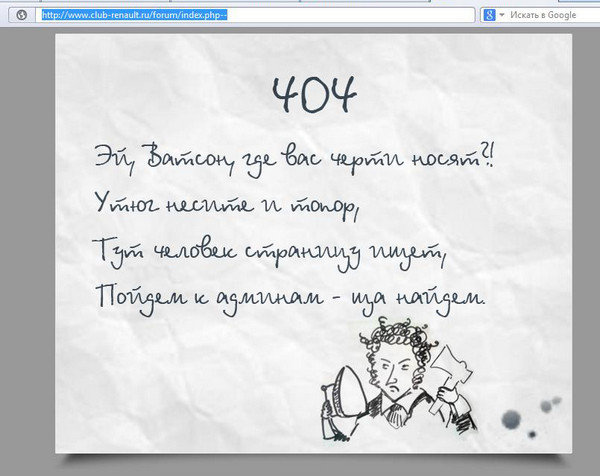 Александр на сайте www.club-renault.ru встретил вот такую вот интересную ошибочку 404.