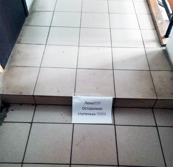 Короче, тем офисникам с фото надавать по ушам за пренебрежение техникой безопасности и разметкой ступенек, вместо которой балуются бумажками.