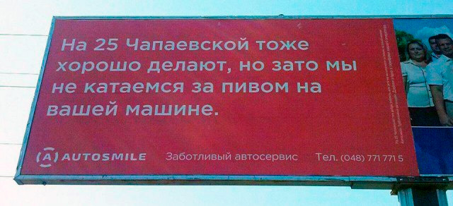 Улица 25-й Чапаевской дивизии находится в Одессе (точнее, находилась, но ее все равно так называют). Сокращенно - 25-й Чапаевской. То, что это точно Одесса, говорит и номер телефона с кодом Одессы - 048. На 25-й Чапаевской много всяких СТО и рядом находится авторынок Успех.