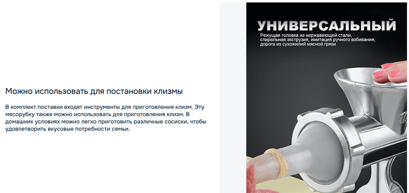В описании мясорубки и другое прекрасно: "дорога из сухожилий мясной грязи".