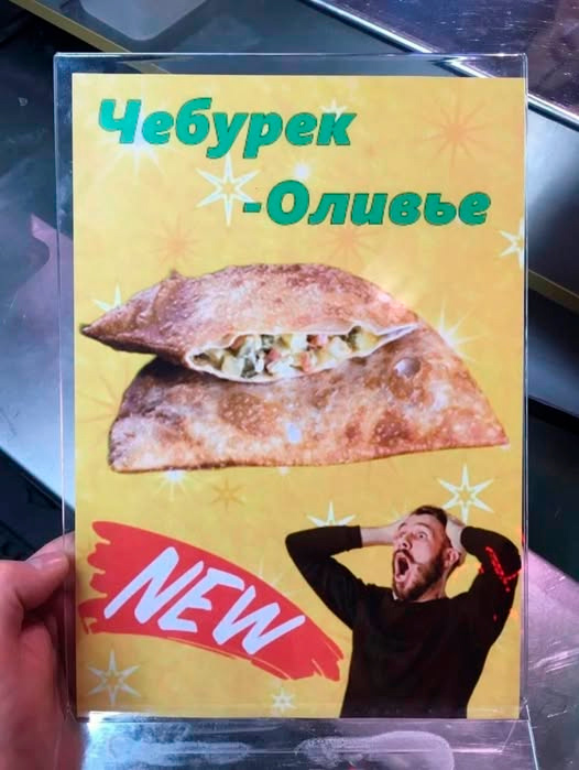 Допустим, чебурек "оливье" — годный вид блюда "на ходу", наподобие шаурмы, для тех, кто любит оливье. Я люблю оливье.