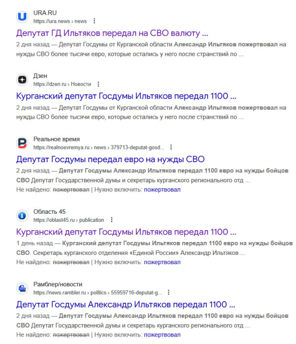 Депутат Госдумы от Курганской области Александр Ильтяков пожертвовал на нужды СВО более тысячи евро, которые остались у него после странствий по миру. Политик считает, что валюта не должна пылиться на полке. Об этом он сообщил в своем telegram-канале.