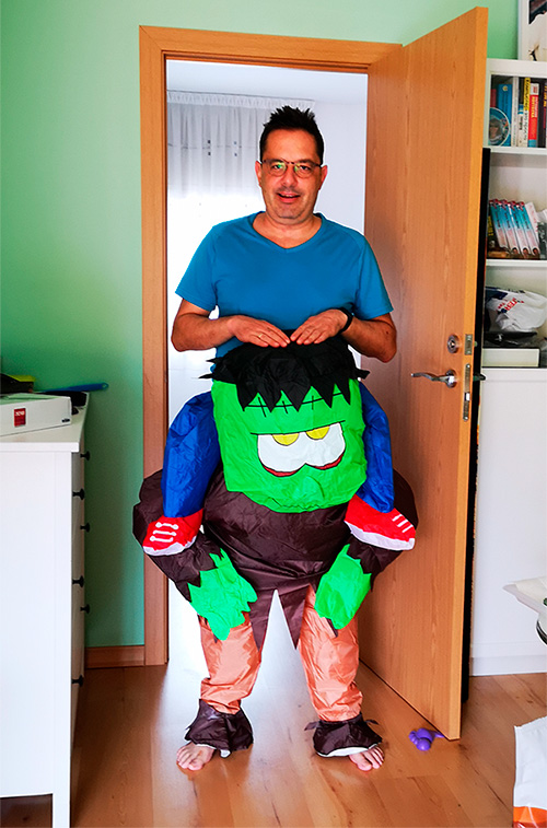 Конечно же, мы с младшим Экслером несколько раз пытались играть в футбол в доме. Щадящим мячом, который даже не все может разбить, но тем не менее - жена не одобрила это времяпрепровождение. И я ее понимаю. Особенно когда была разбита вазочка, которую мне подарил старина Лёлик. (Лёлик лет сто назад купил двадцать дешевых вазочек и теперь лет пятьдесят дарит их всем друзьям на главные юбилеи.) Младший Экслер стал подыскивать варианты, нашел вот такой домашний аэромяч. Ну, вроде, фигня-фигней, тем не менее заказал - пять евро я потяну, если что. Ну, кредит возьму, в самом деле.