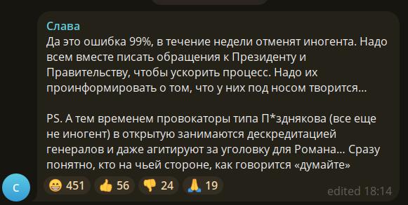P.S. кого угодно стали брать в инагенты, пора уже ввести какую то градацию, типа "Инагент 1й степени"