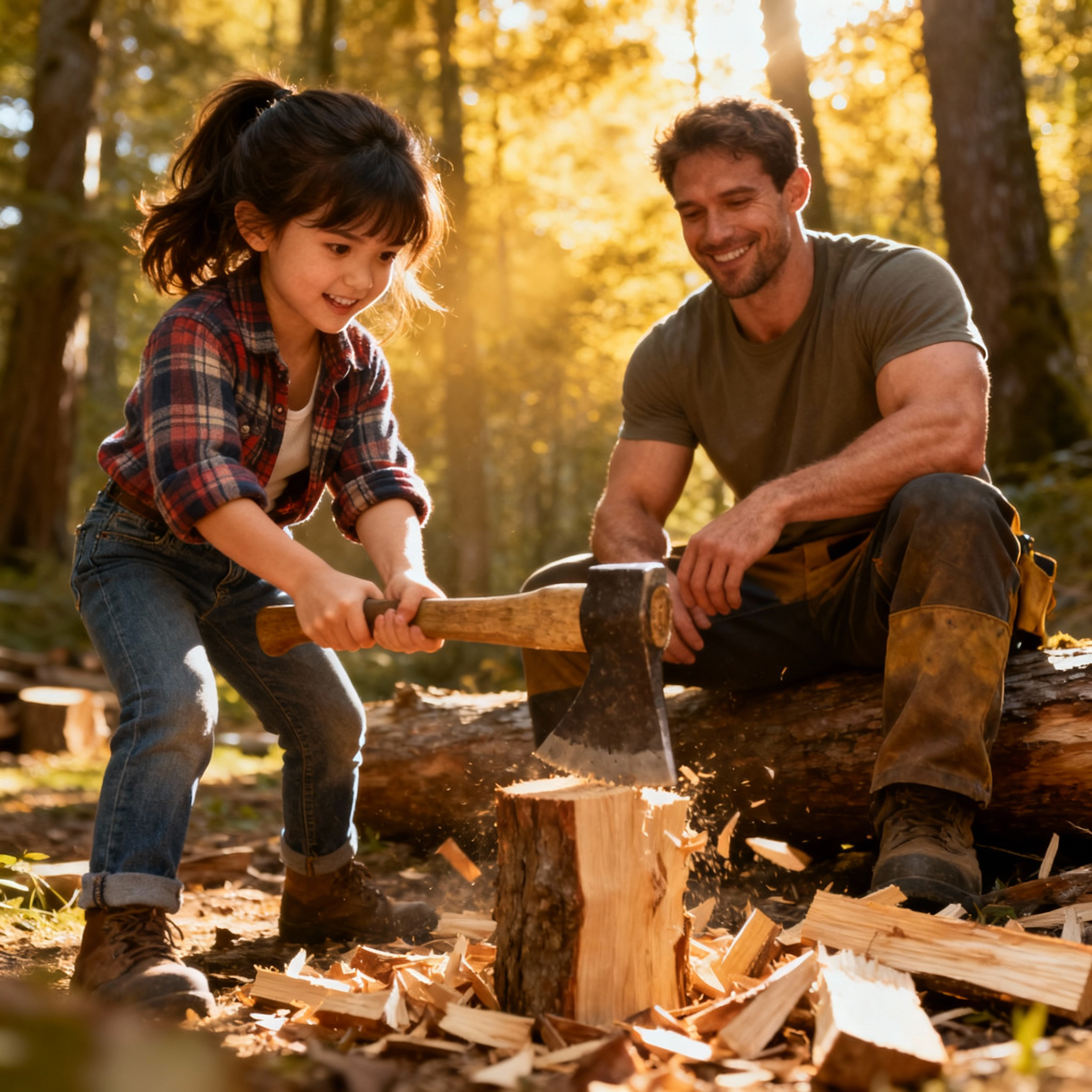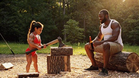 Только вот странно у нее топор отскакивал первые несколько ударов. Обычно он втыкается и застревает. Я уж было подумал что тоже ИИ.