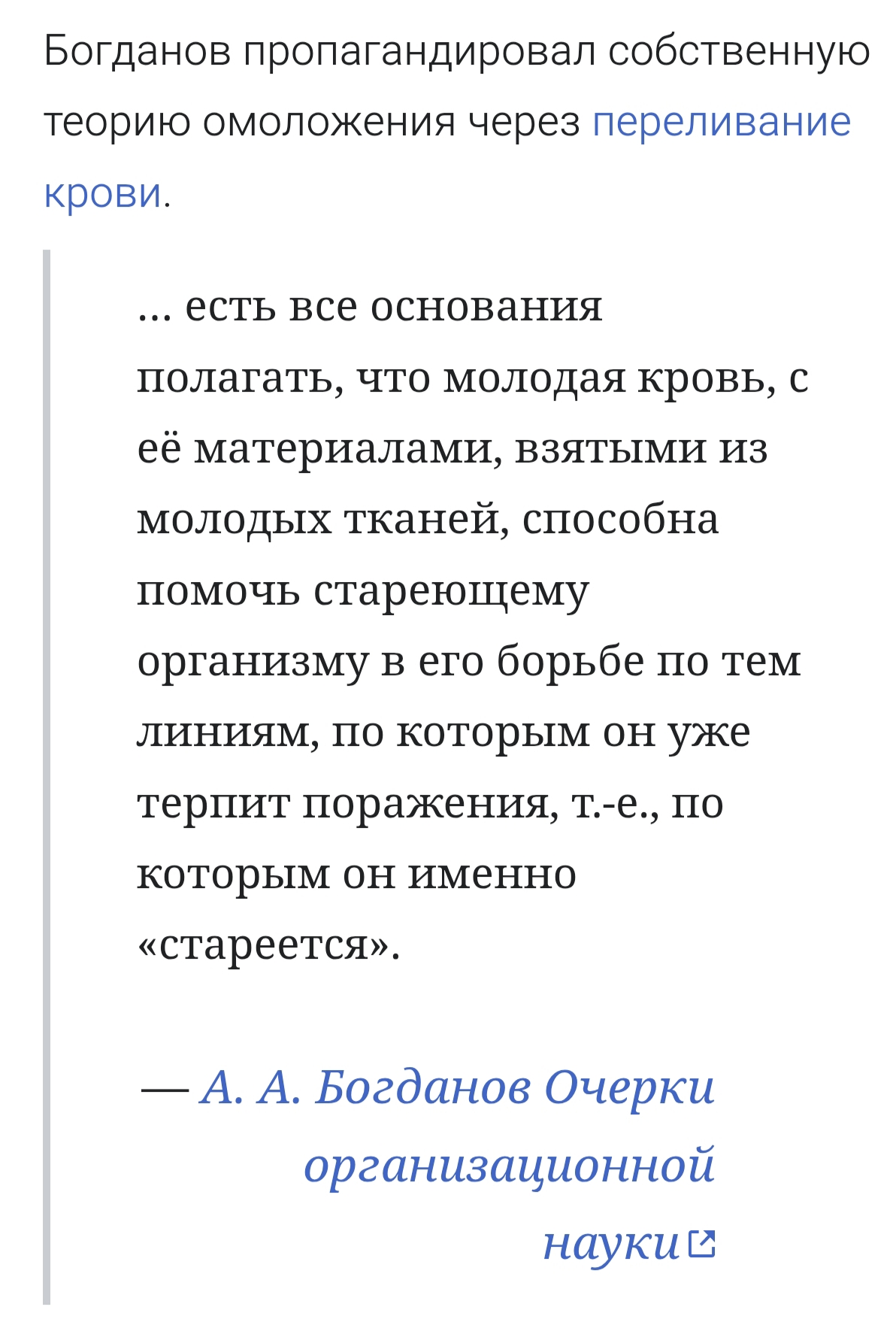 Более того, у сверхбогатых есть возможность подливать себе молодой крови, в буквальном смысле. Если на Западе этим люди занимаются, то, возможно, в разного рода элитах диктатур такое "оздоровление" уже нормализовано. Проханов проболтался.