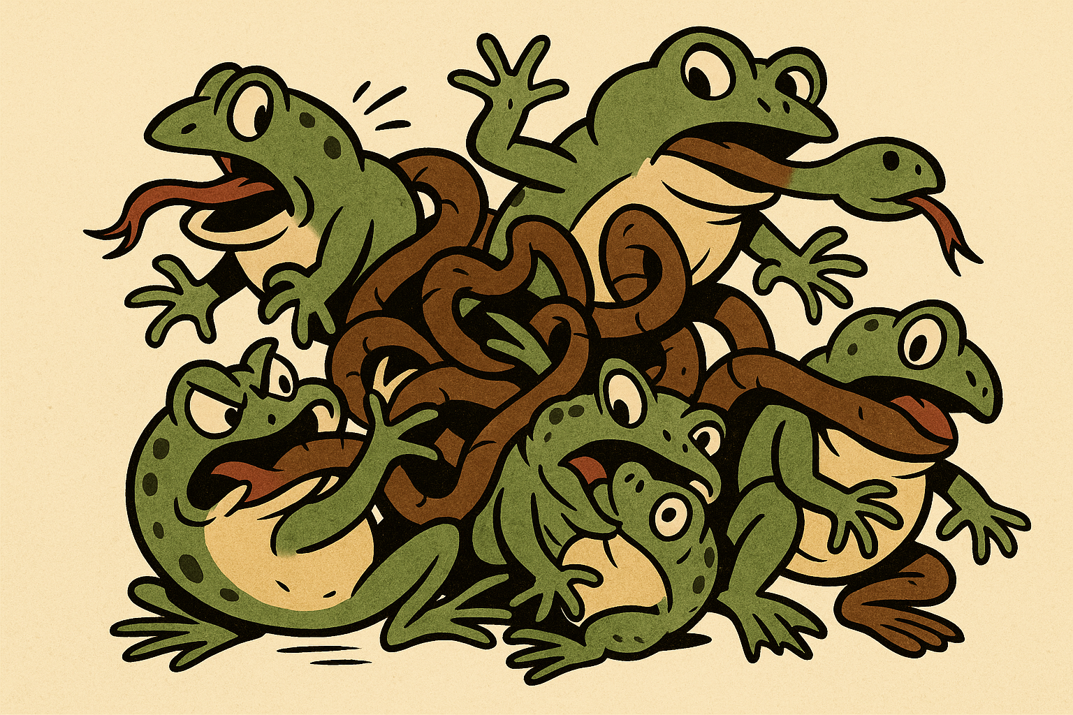 Бедные слабоумные. Никак они не могут усвоить, что светлое здание людской гармонии, вершина человеческих отношений — пирамида тотальной власти — давит своим прекрасным величием не «левых» и не «правых», не своих и не чужих. Она уничтожает самодеятельность.