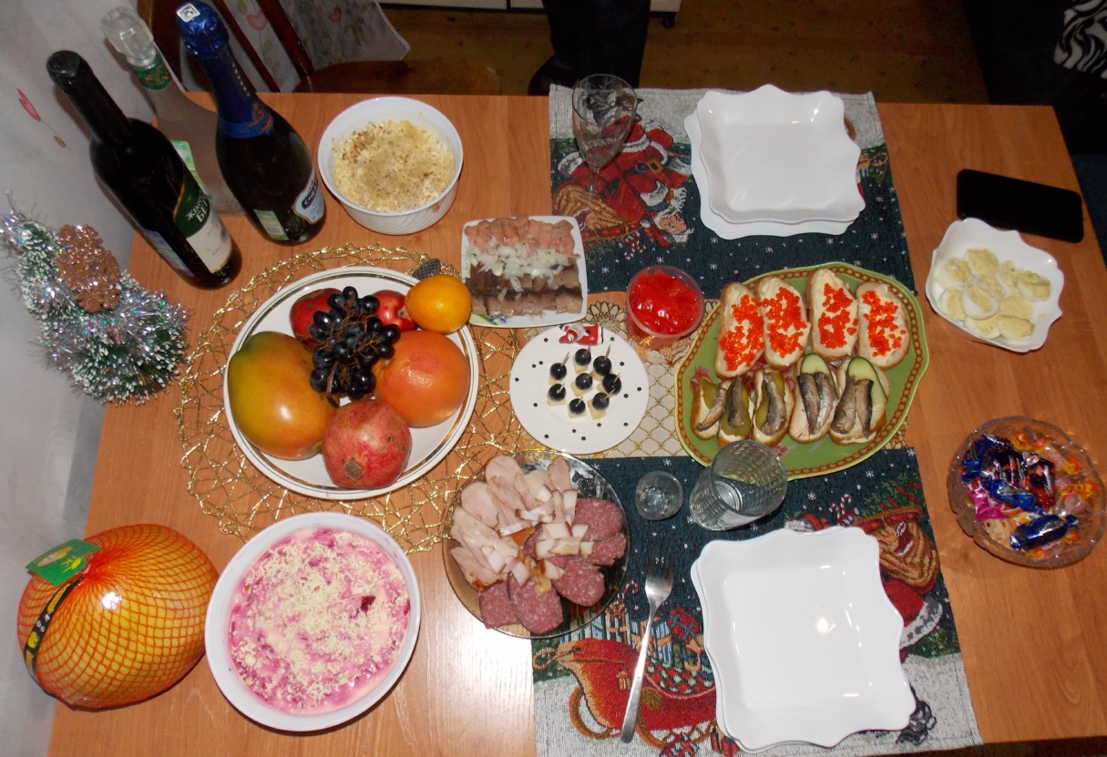 У нас были гости (двое), поэтому новогодний стол был нетипично продвинутый. Вот такой.
