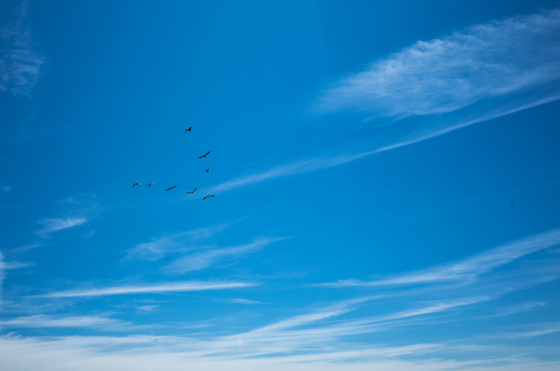 А это летят фламинго, которые здесь водятся. Но они очень пугливые, людей к себе не подпускают. Зато их можно снять в полете.