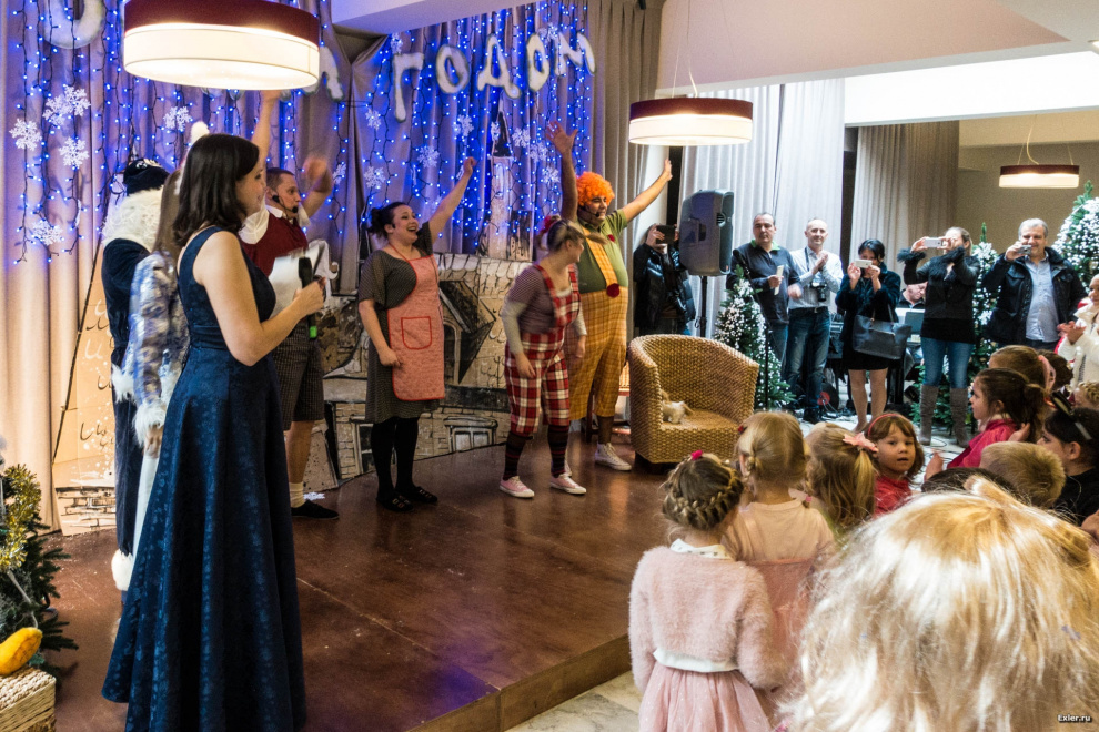 Большой и просторный зал, грамотно продуманная рассадка гостей (детишки - в первые ряды, родители сзади), хорошее представление с Малышом, Карлсоном и Фрекен Бок, несколько помощников-аниматоров, которые четко заводили и направляли детей, продуманная система выдачи подарков (в прошлом году с подарками просто была какая-то свалка), так что очень понравилось.