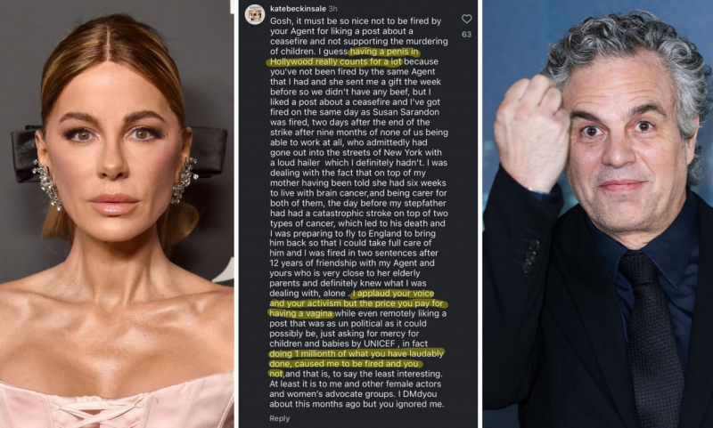 Кейт Бекинсейл критикует Марка Раффало после того, как с ней разорвал контракт агент: «Похоже, в Голливуде действительно имеет значение наличие пениса»