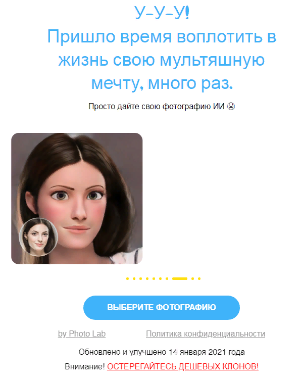Забавный какой сервис. Загружаете туда свое фото, он его преобразует в несколько мультяшных персонажей.