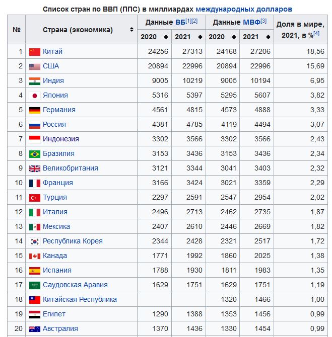 Список стран по ВВП по паритету покупательной способности интереснее: