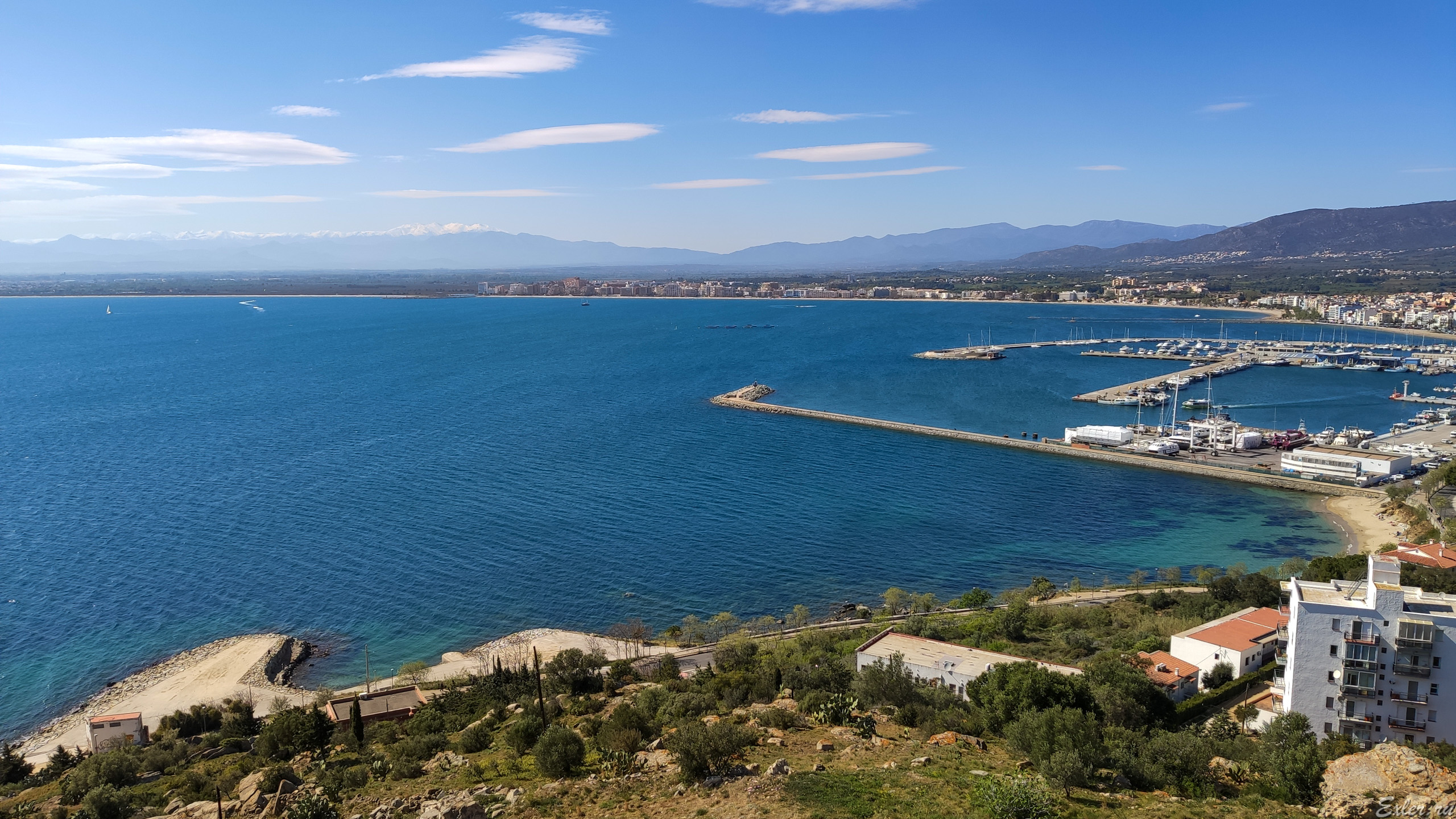 Франция буквально в двух шагах (в городке, кстати, французскую речь слышишь чаще, чем испанскую-каталанскую), видны заснеженные Пиренеи.