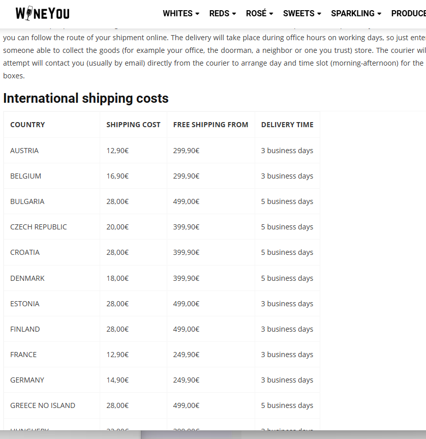 Разница в стоимости доставки между странами ЕС крайне небольшая и обычно не заказывают одну бутылку.