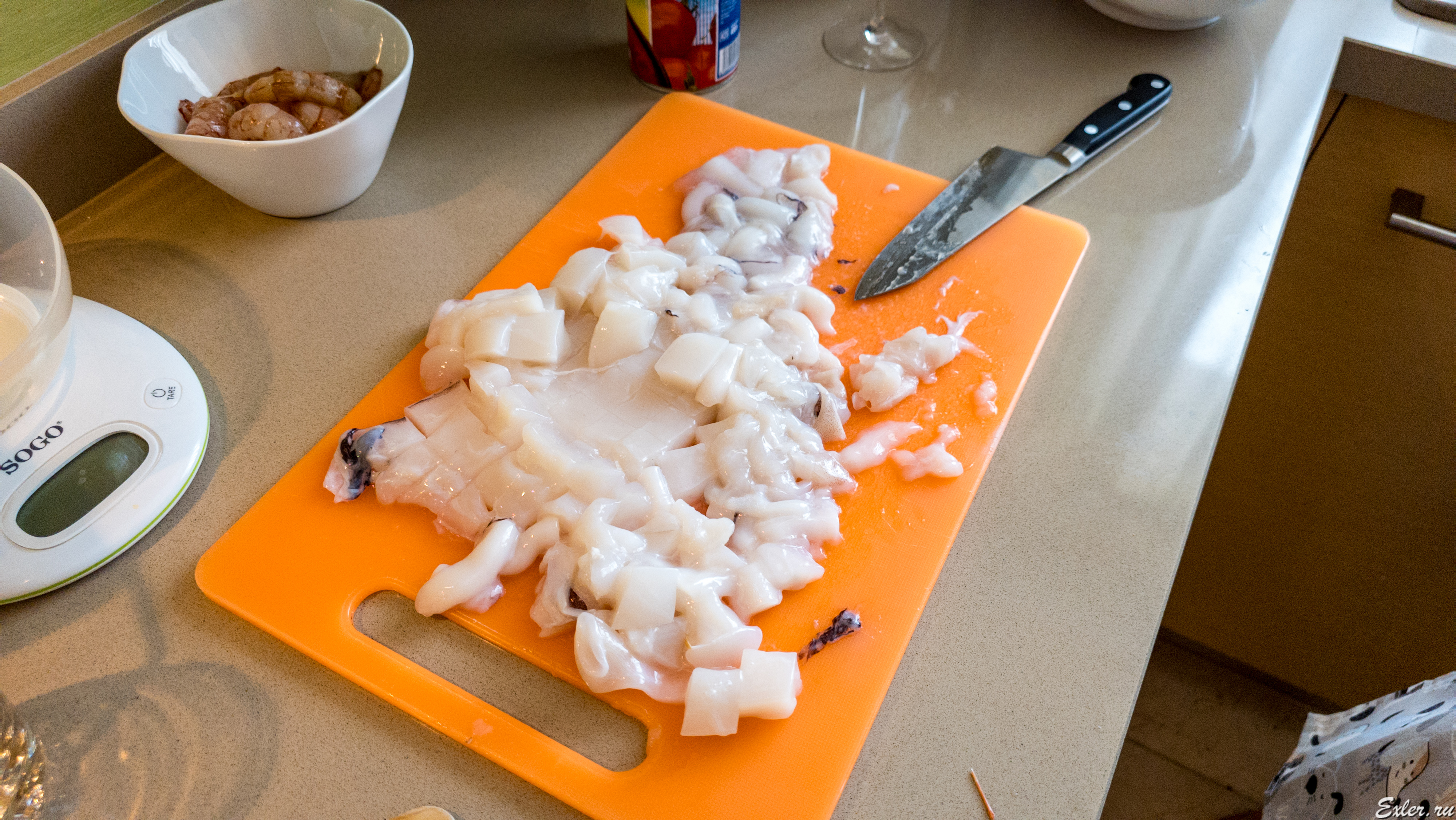 Каракатица режется кубиками.
