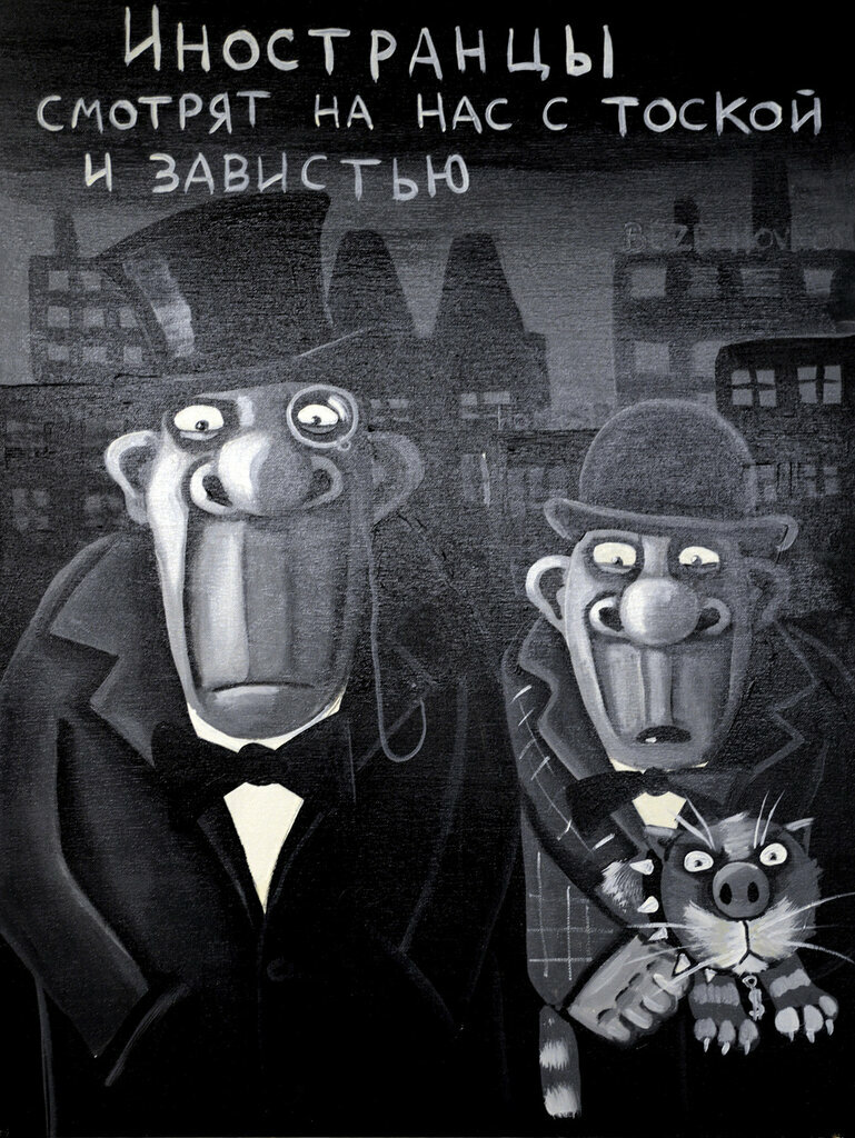 "Русские даже не представляют, - добавил еще один иностранец, - насколько нам, иностранцам, тяжело со всеми этими макдональдсами, старбаксами и прочим капиталистическим дерьмом. Так хочется чтобы просто было вкусно. Наши иностранные президенты не могут нам, их народу, этого дать. А великий Владимир Владимировоич дал это русскому народу. Я вообще считаю, что умом Россию - не понять. Да и, если подумать, аршином общим - толком и не измерить. У ней прям какая-то особенная стать, как я считаю".