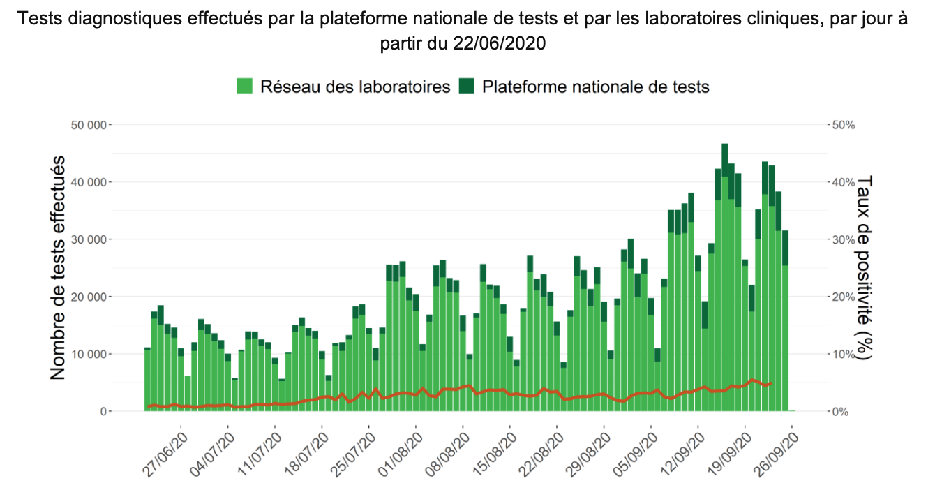 "Du 16 au 22 septembre, 257.815 tests ont été effectués, soit une moyenne quotidienne de 36.831 tests".