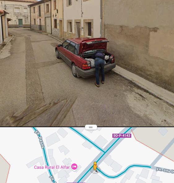 Слушайте, у меня вопрос. Автомобили Гугла одно и то же место проезжают далеко не каждый год. Мы когда купили дом в Испании, потом еще года два наблюдали в картах на фото нашего дома бывших владельцев, машущих машине Гугла (их лица, конечно, были заблюрены, но было очень легко определить, когда это снято, потому что у бывших владельцев не было никакой живой изгороди из кипарисов, а у нас она появилась довольно быстро).