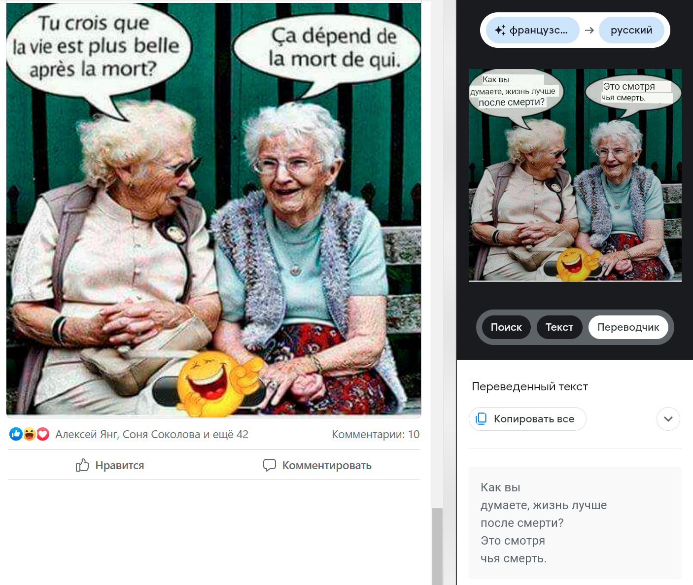 Алексей Янг рассказал, я и не знал. Оказывается, в Chrome можно переводить тексты с картинок. Для этого нужно нажать правую кнопку мыши и там выбрать "Найти через Google Объектив", а там потом нажать на кнопку "Переводчик".