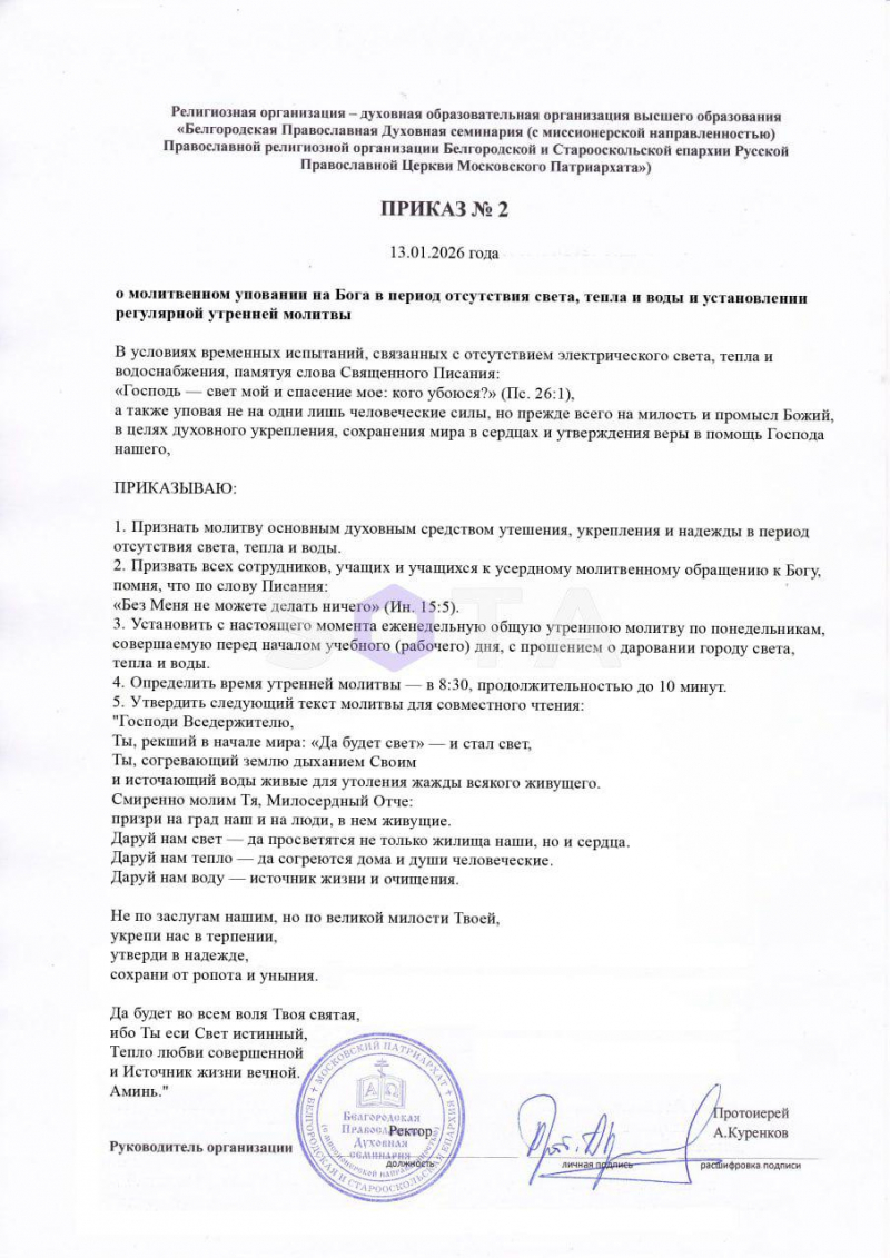 В Белгородской области есть серьезные проблемы со светом, водой и теплом, но ректор Белгородской семинарии знает, как это все побороть. С помощью молитвы, разумеется. Она же чудеса творит! Уповайте, братие, на боженьку! Авось он печку раскочегарит и смартфончик зарядит божьей помощью!