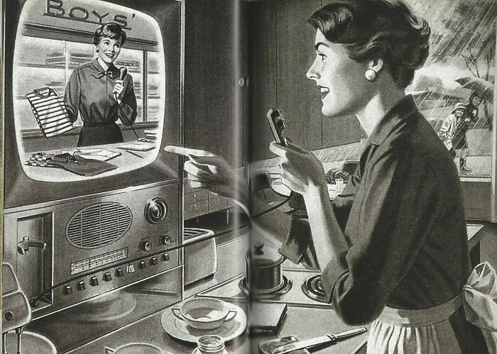1940 год - представление удаленного шопинга. А что, все четко - "Магазин на диване".