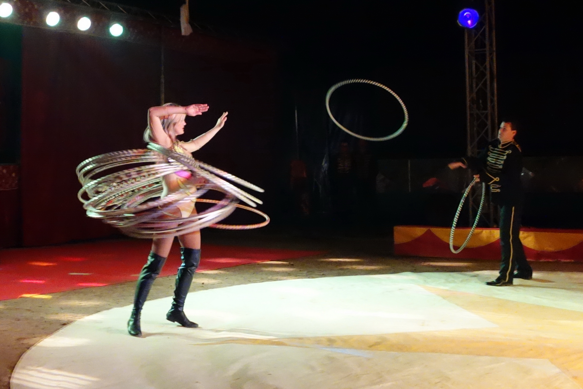 Под конец на нее набросили аж 24 обруча. Практическую пользу кручения подобного количества обручей я не понимаю, но зал хлопал активно.