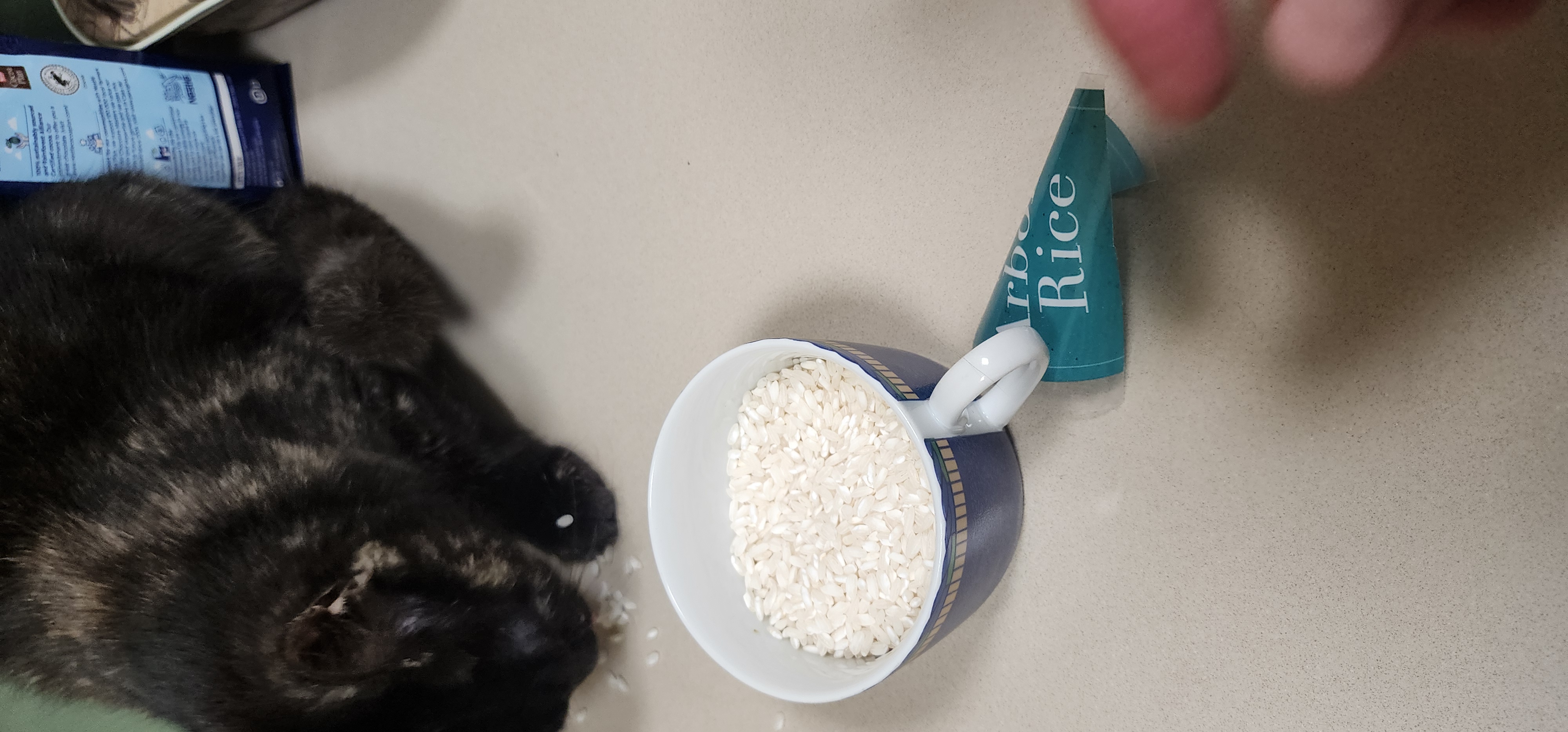 У меня тоже всю жизнь кошки, и тоже все с улицы (даже в Сиднее). Старшим скоро по 18 (сестры, увидили в лесополосе полудиких, и решили не оставлять их там. Мамочку тоже бы взяли, но не нашли, хотя пару дней приходили, проверяли). А недавно пришлось подобрать ещё одну -- форменный уличный ребёнок: нахальная, хваткая, умная, дерзкая, и невероятно прожорливая: лопает все, включая сырую крупу (на фото охота на сырой рис). Не ест только сырые баклажаны и 70+ процентный шоколад (другой жрет). Причём реакция потрясающая: сначала урвать, а уже потом понять, что несъедобно и выплюнуть))