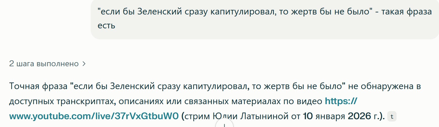 Например, она приравнивает ответственность Зеленского и Путина в гибели в войне людей.