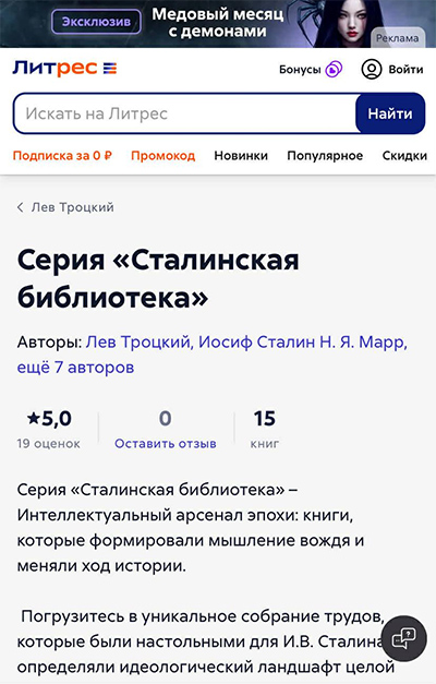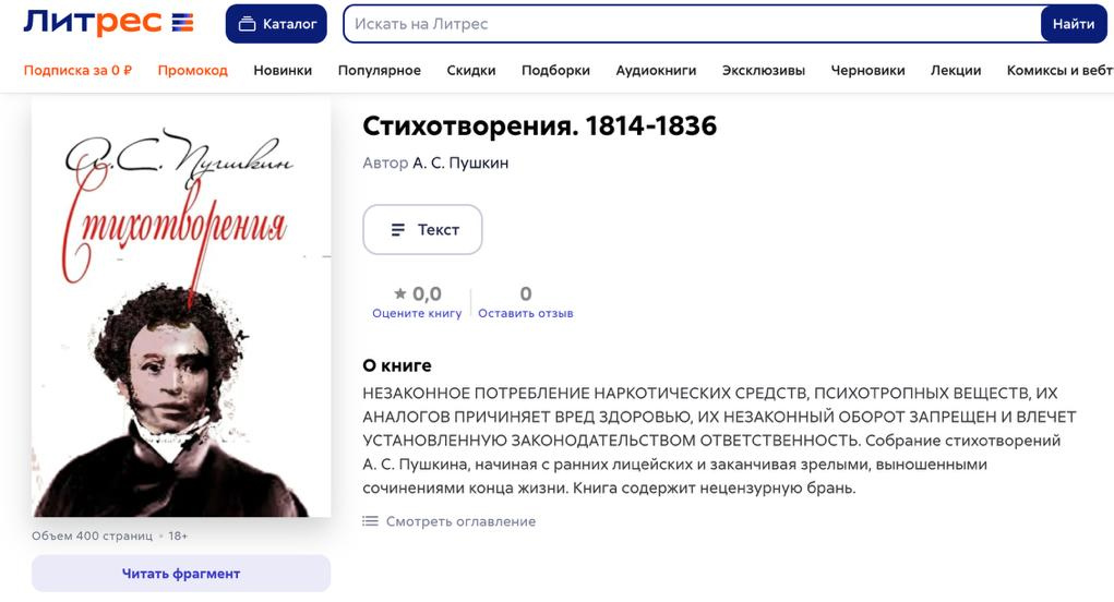 Ну то что маркируют Пушкина - придурь депутатов, а вот Сталина библиотека это по собственной инициативе, и знаете, я как то не удивлен. Литрес это очень "правильная" контора, идейно близкая, странно что еще нет серии вроде: Z-хит, или книги для юных путинят.