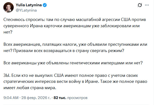 Ну, про имперцев можно будет говорить, если Трамп и впрямь попытается силой захватить Гренландию или Кубу. Зетовцы вечно пытаются смешать в одно: свержение режима и завоевательную войну.