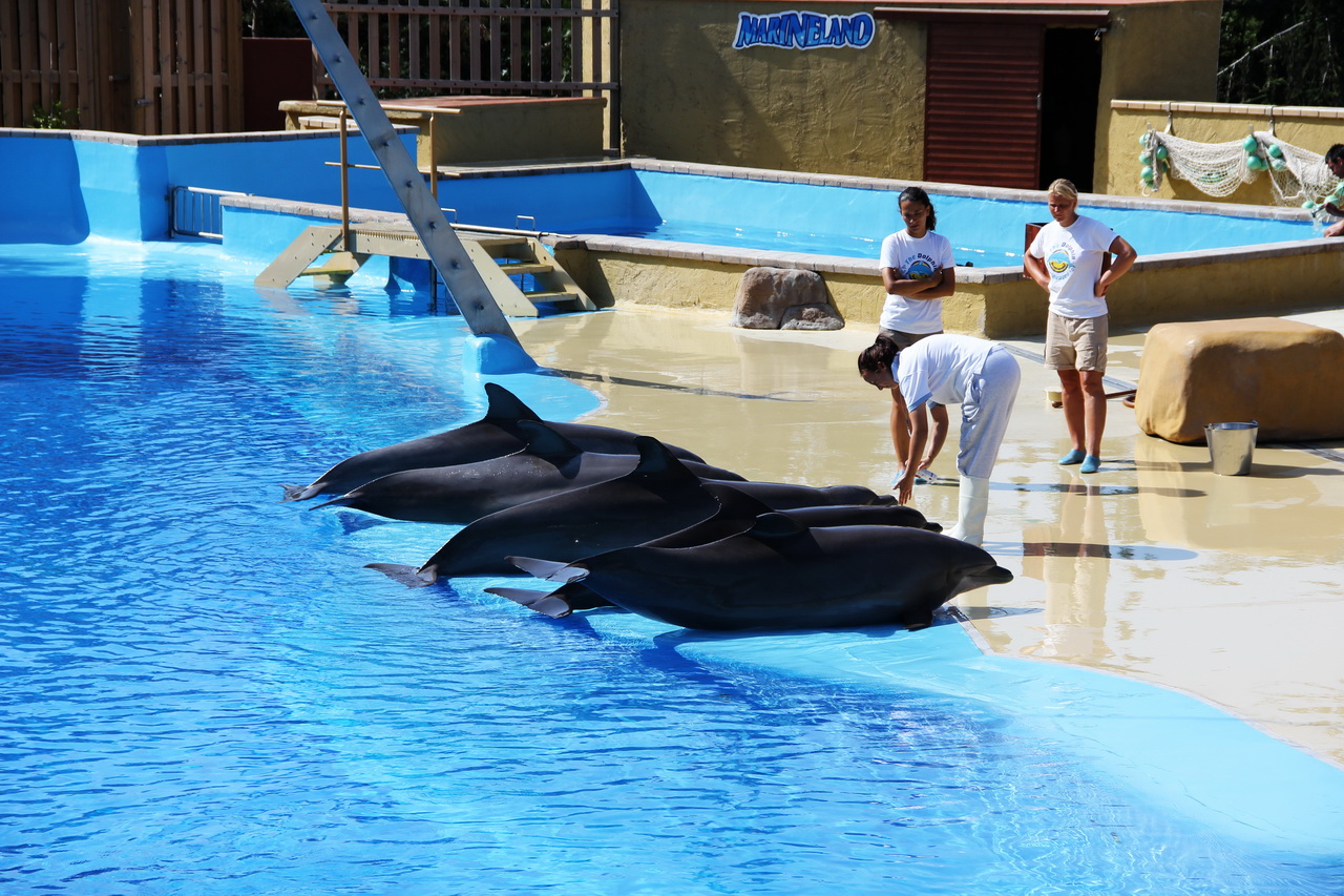 Сходили в местное (Palafolls) заведение под названием Marineland. Забавное место: маленький зоопарк со всякими экзотическими птицами и животными, шоу попугаев, шоу морских львов, шоу дельфинов и даже аквапарк. Ребенок был в восторге, да и нам понравилось.
