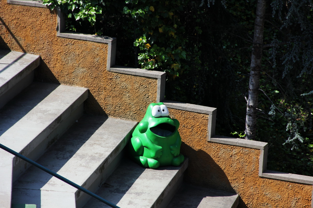 В амфитеатре, где проходит шоу попугаев, стоят вот такие прикольные урны.