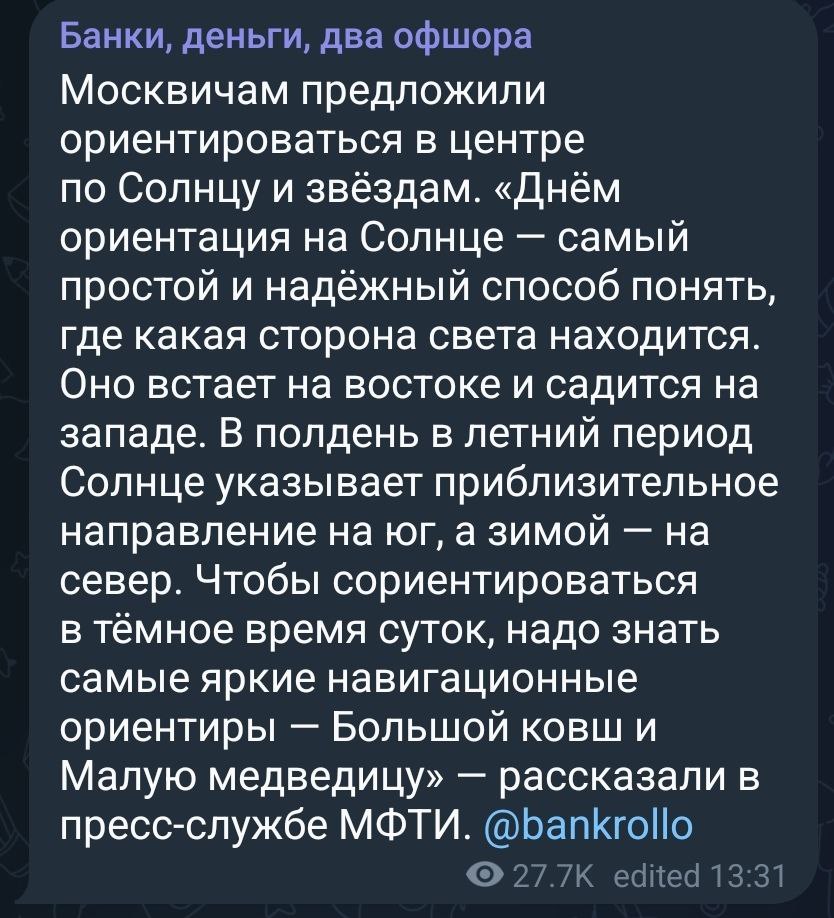 Но кто я такой чтоб целой пресс-службе института что-то рассказывать. Да и наверно чтоб в Москве по солнцу ориентироваться подойдёт.