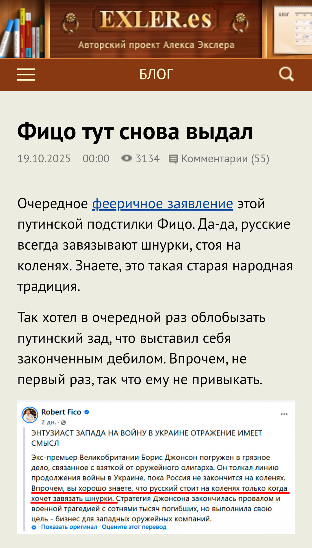 К чести Фицо нужно сказать, что он тоже встает на колени, только чтобы завязать шнурки или отсосать у Путина, что он и делает с полной на то самоотдачей.