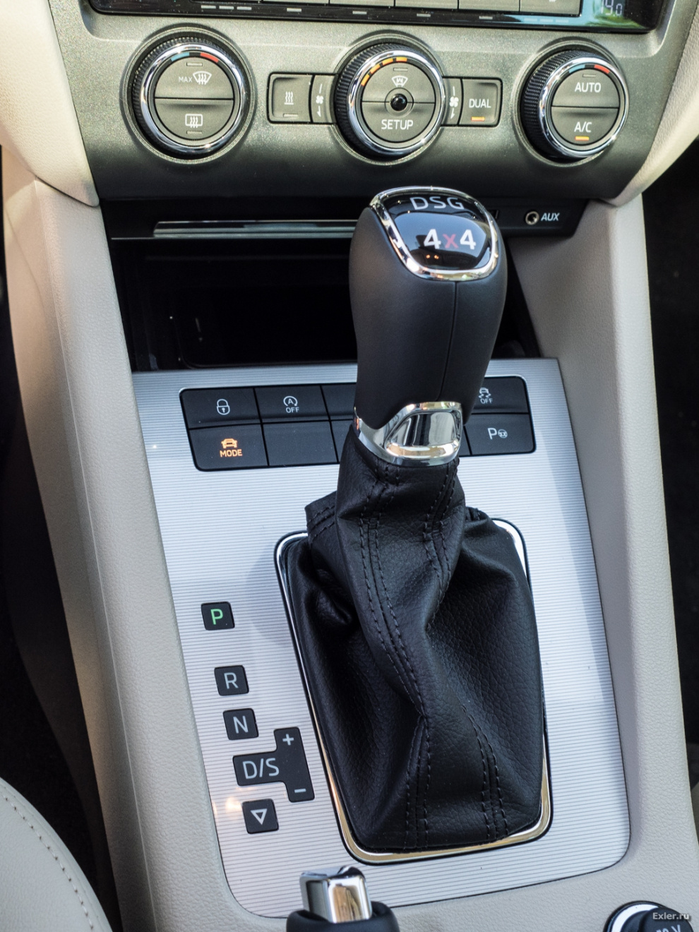 Здесь установлена фольксвагеновская роботизированная автоматическая шестиступенчатая коробка передач DSG-6. Она интересна тем, что здесь по сути присутствуют две коробки с двумя сцеплениями: для четных и нечетных передач. Пока машина разгоняется на четной ступени, следующая, нечетная, уже включена. В момент переключения "четное" сцепление размыкается, а "нечетное" одновременно замыкается, так что процесс смены передач происходит без разрыва потока мощности и, следовательно, без рывков и подергиваний.