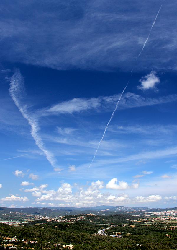 А чего это след от самолета какой-то неровный? Как будто по кочкам пронесся...