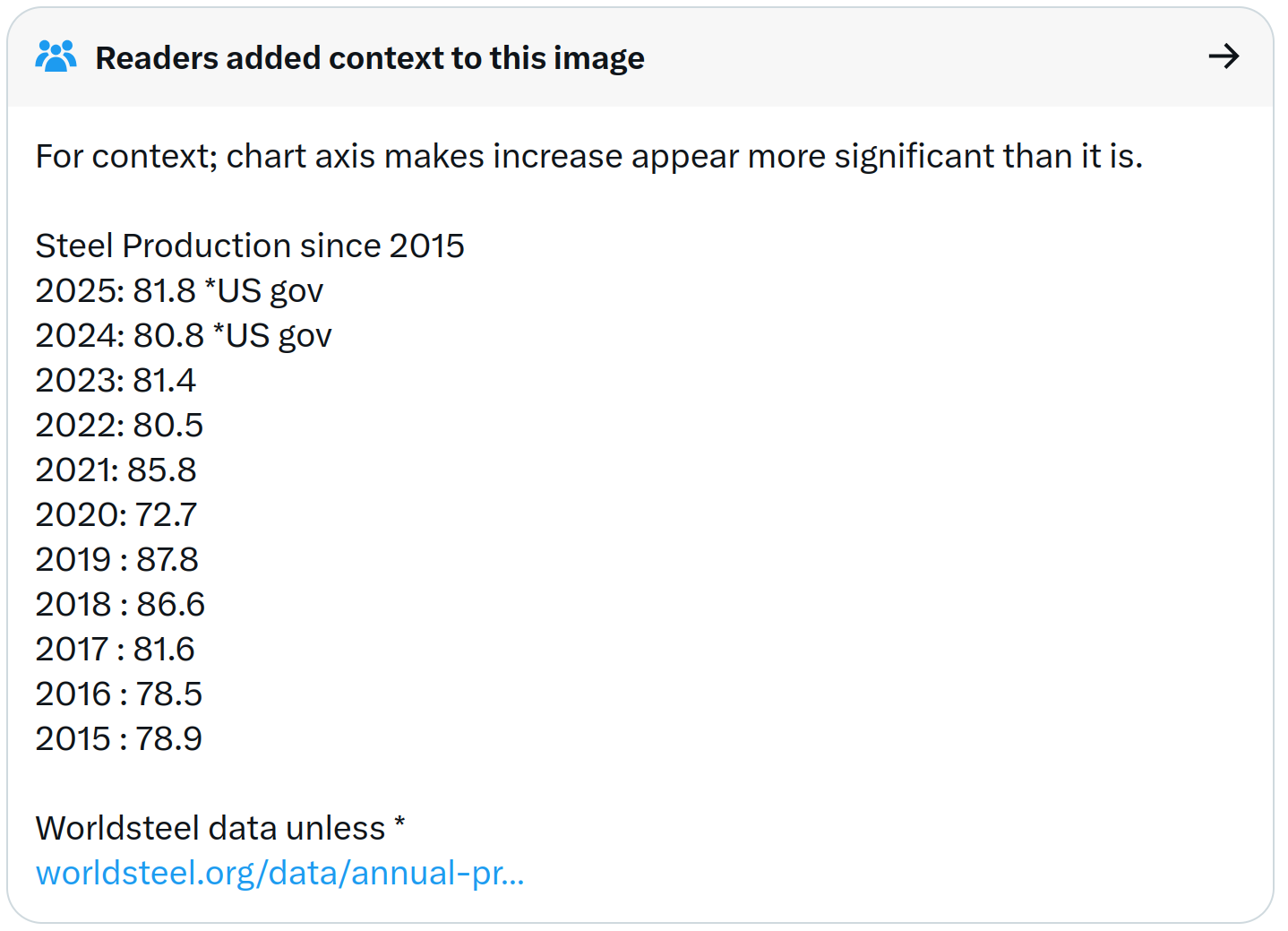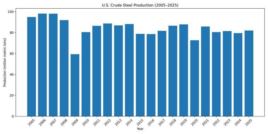 В официальном твиттере Белого дома опубликовали вот такую картинку, демонстрирующую невероятный рост сталелитейной промышленности при Трампе.