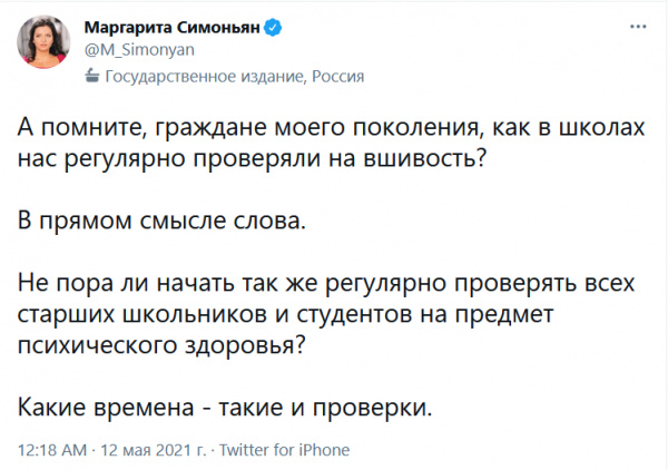 С начала надо саму Симонян проверить начиная на вшивость и заканчивая алкотестером.