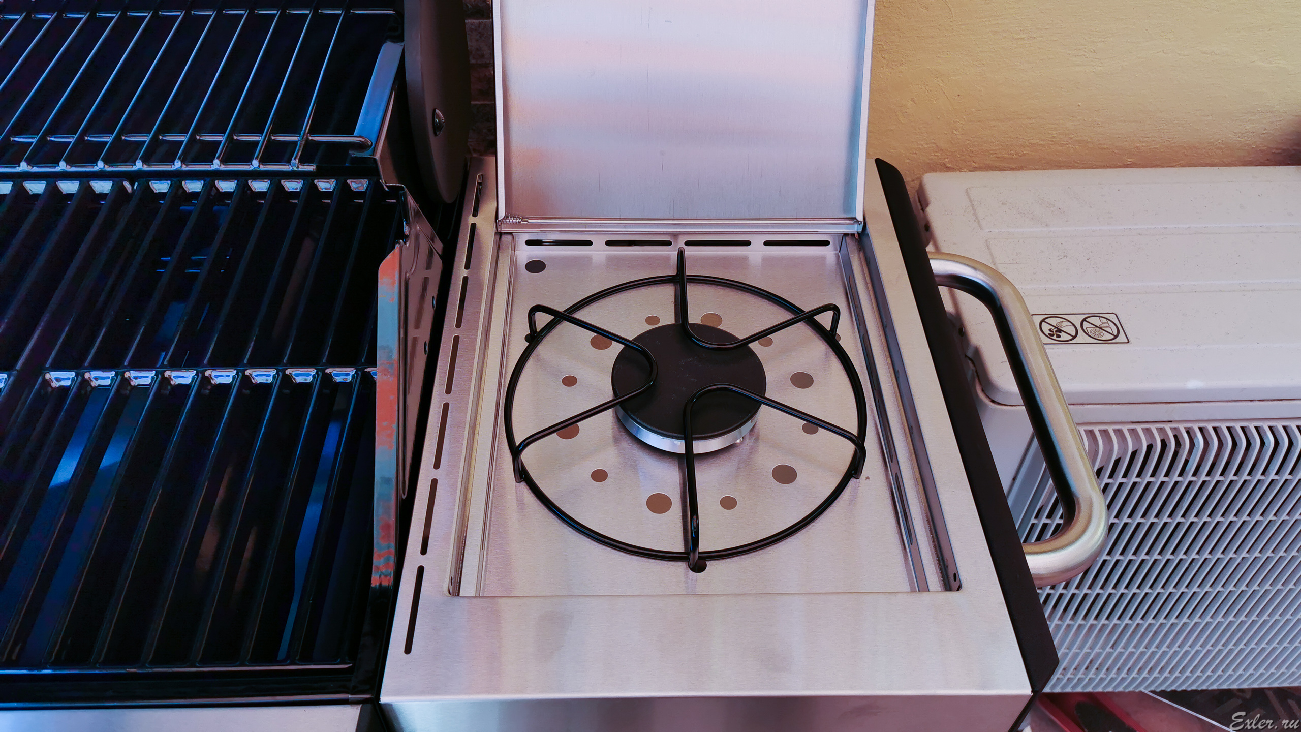 Шура, вы же знаете, как я уважаю Weber! Я понимаю, что если я куплю газовый Weber, то он у меня проживет минимум лет двадцать. Но я сам совершенно точно еще лет двадцать не протяну, поэтому стал искать варианты подешевле и чтобы со столом, не менее чем с тремя конфорками, также хотелось еще четвертую газовую конфорку отдельно - для сковородки или кастрюли (лук жарить или борщ варить). И чтобы с дверками. И чтобы внутрь можно было бы поставить газовый баллон. И чтобы всякие штучки-дрючки. И чтобы проверенный производитель, не Китай. И чтобы смотрелся хорошо. И чтобы был удобный. И чтобы второй этаж решетки. И чтобы горелки было достаточно низко - когда они высоко, мясо подгорает от открытого пламени. И чтобы кроме решетки была планча (сплошная поверхность для жарки овощей). И чтобы стоило не как самолет, а где-то до €400.