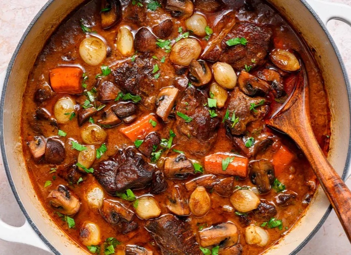 Разве? Как по мне, это просто упрощённый вариант Bœuf bourguignon. С учётом советских реалий